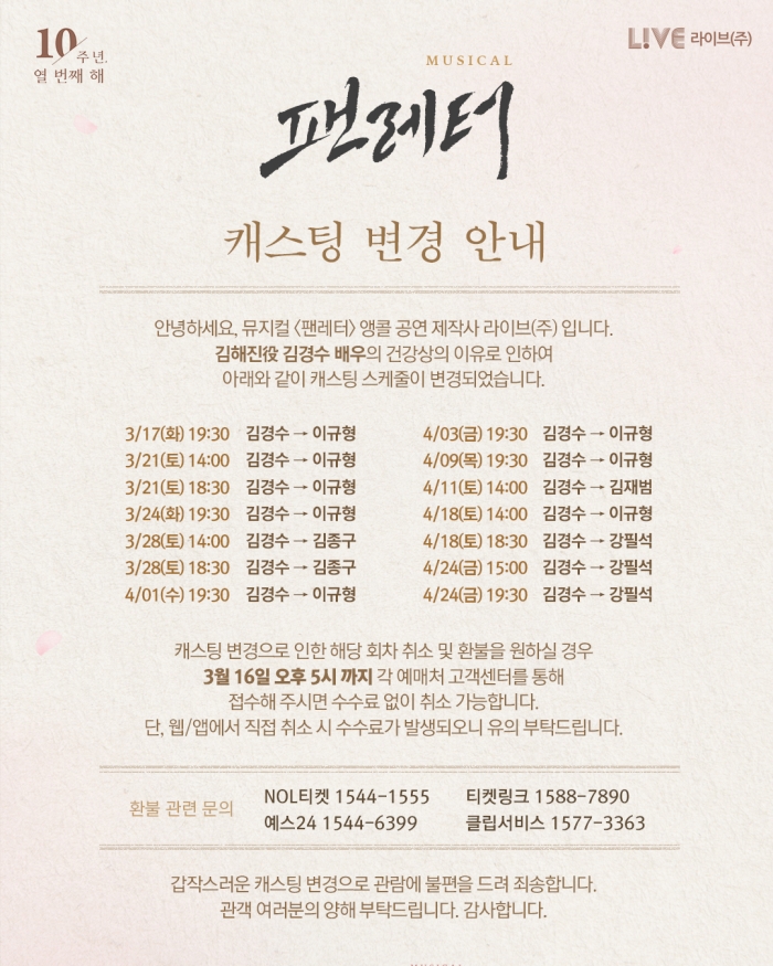 뮤지컬 <팬레터> 10주년 기념 앵콜 공연 - 비지정석