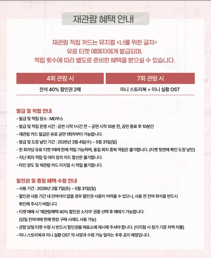 뮤지컬 <너를 위한 글자> - 비지정석